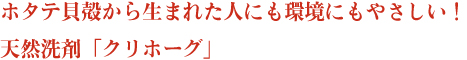 この度、貝殻の特性を活かして界面活性剤なしの100%天然の天然洗濯用洗剤「クリホーグ」と 入浴温水除菌剤「貝洗美」を開発しました。